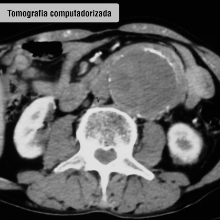 A tomografia computadorizada de abdômen é o principal exame para revelar e avaliar o tamanho do aneurisma. Também é comum recorrer à angiografia para planejar o tratamento.
