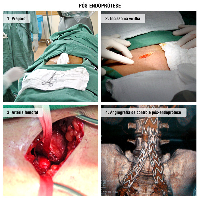 É cirúrgico. No tratamento convencional, o cirurgião insere uma prótese plástica ou um segmento da veia safena do próprio paciente para substituir a região da artéria que está dilatada. Já na cirurgia endovascular, o especialista coloca stents por dentro do aneurisma, isolando-o da circulação através de um pequeno orifício na pele.