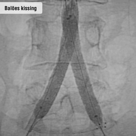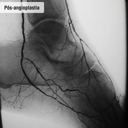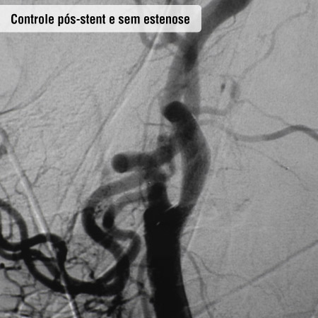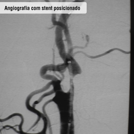 São introduzidos cateteres até o vaso acometido através do qual é implantado um stent (tubo metálico que mantém o vaso aberto), que é expandido por um balão. A taxa de sucesso do procedimento é de 95%, ou seja, em apenas 5% das vezes não é possível implantar o stent.