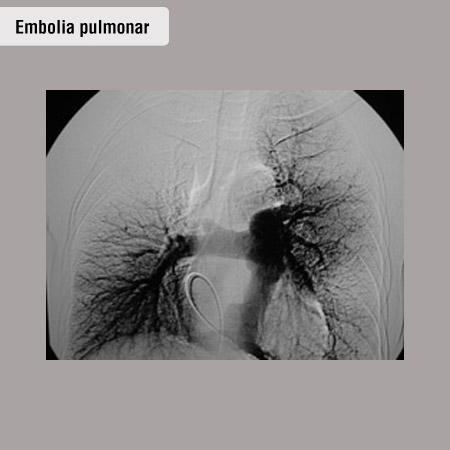 Obstrução das artérias pulmonares por um coágulo que se desprende em pacientes com trombose venosa profunda. Às vezes, a embolia pode ocorrer em pessoas que não sabiam ter trombose venosa.