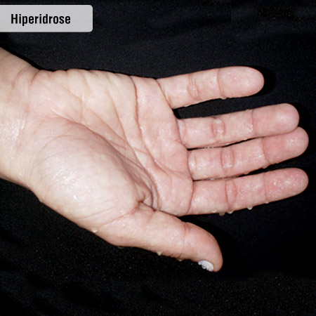 Na axila: as principais queixas são roupas excessivamente molhadas, manchadas e danificadas e aspecto de má higiene. Na palma da mão: os pacientes reclamam de dificuldades para manusear papéis e instrumentos e cumprimentar ou tocar pessoas, resultando em dificuldades de relacionamento e problemas psicológicos.
